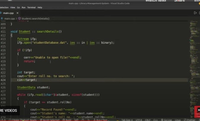 In this project, we have discussed the library management system project on file handling. File handling in CPP is a very important topic. This project includes the following functionalities are as follows: 1. Creating a file 2. writing into the file 3. opening a file 4. closing a file 5. issue Book 6. deleting the book